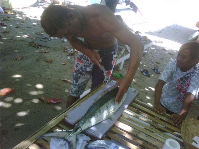 写真はトローリングでゲットしたサワラ。その場で刺身にして食べられるそうです。