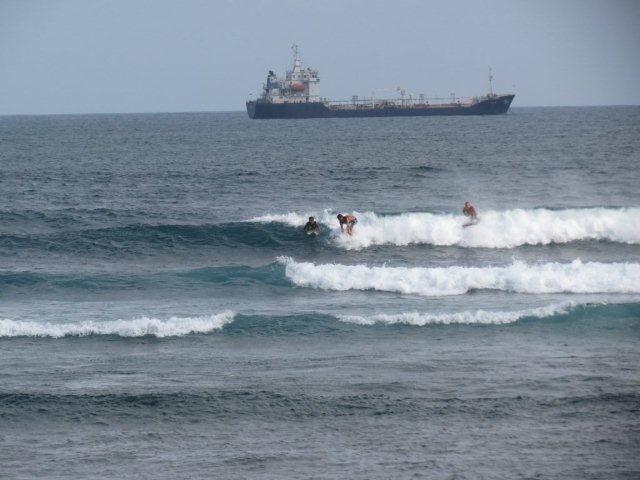 西〜南西風が吹き続いたため、西サイドはバンピーとなり、東サイドにサーファーが集まっていました。