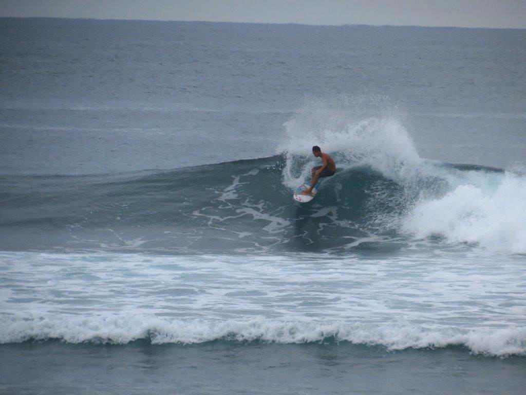 2(日)はサイズダウンの3-5ftレンジ(カタ〜頭)、朝は風が弱かったものの、日中は再び南よりの風が吹き込んでしまい、コンディションの悪化が目立っていました。