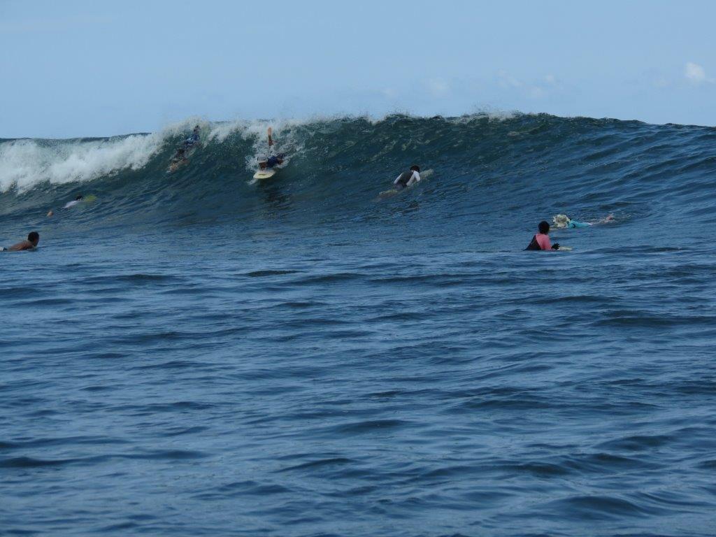 4-6ftレンジから6-8ftレンジ(ヘッドオーバー〜ダブル)、後半は更に大きめのセットが入り、ビーチはクローズアウトしてリーフブレイクが真価を発揮。
