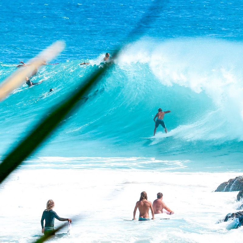 日中は南〜南東風が強めながら4-6ftレンジ(ヘッドオーバー)のスナッパーロックスやバーレーヘッズを中心に十分ライド可能。