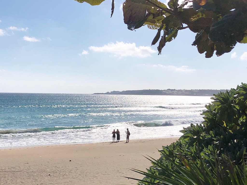 南側の南湾Pはウネリが回り込む形でコシ〜ハラサイズあり、形良いブレイクも。