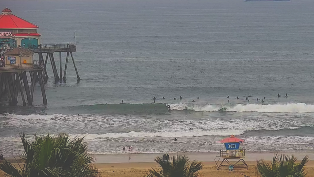 24(木)は北東のオフショアがやや強まり、ウネリは抑えられた形。引き続きのスモールの中、ハンティントンビーチは他よりも1サイズ大きめでした。