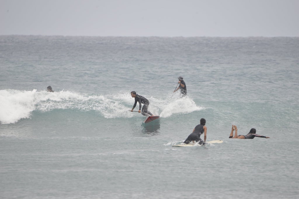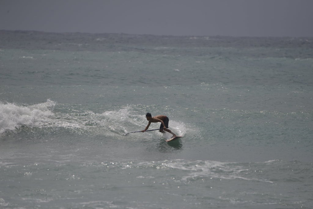 アウトのセットは形良く、ファーストセクションでのターンからミドル〜インサイドまで繋げられる波もあり。潮が引いてきたお昼頃にかけてはショートでも楽しめる波に変化していました。