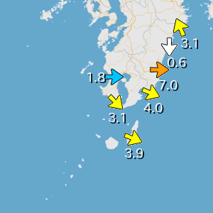 m/s5.3 5.1 4.1 3.4 2.5 2.8 3.1 3.0 3.4 3.6 2.7 3.0 6.3 6.8 7.6 7.8 7.5 7.0 風向 潮位